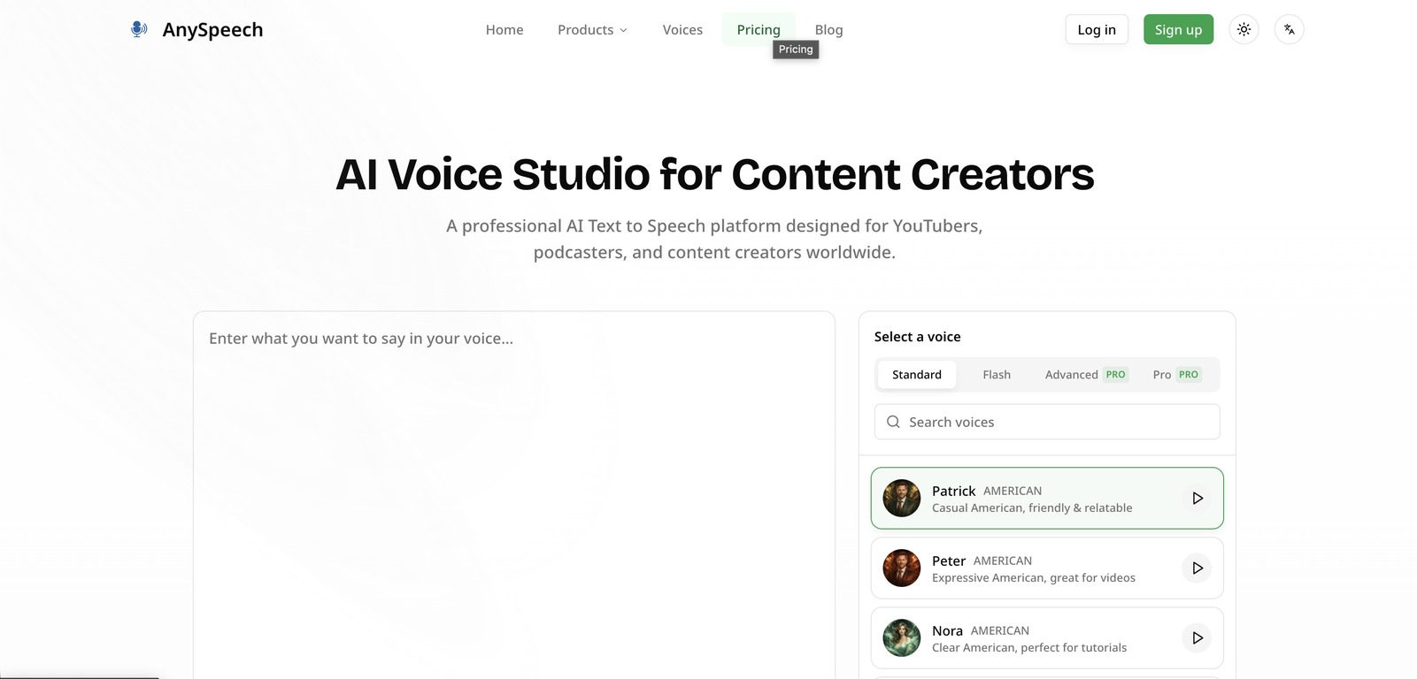 Overview AnySpeech is an AI text-to-speech and voice cloning platform designed for creators, businesses, educators, and developers. It transforms text into natural-sounding speech with realistic AI voices that are suitable for a wide range of use cases, including video voiceovers, podcasts, audiobooks, e-learning content, marketing campaigns, accessibility tools, apps, and games. The platform offers more than 100 AI voices and supports 50+ languages, making it a flexible solution for both local and global content creation. Users can generate high-quality speech in just a few steps: enter text, choose a voice, customize the output, and download the final audio. Voice settings such as pitch, speed, and emphasis can be adjusted to better match different tones, formats, and audiences. One of AnySpeech’s standout features is voice cloning. With a short audio sample, users can create a custom AI voice in seconds, making it especially useful for content creators, podcasters, brands, and teams that want to scale audio production while keeping a consistent voice identity. For developers and product teams, AnySpeech also provides API access, allowing AI voice generation to be integrated directly into apps, workflows, and software products. Whether you are producing social content, building audio features into an application, creating training materials, or launching multilingual campaigns, AnySpeech helps make speech generation faster, simpler, and more scalable. Key Features Voice Cloning 100+ Ai Voices 50+ 50+ Languages Multilingual Text To Speech Podcast Narration Ai Podcast Generator Toggle Sidebar Speech To Text Toggle Sidebar Voice Isolator Show more
