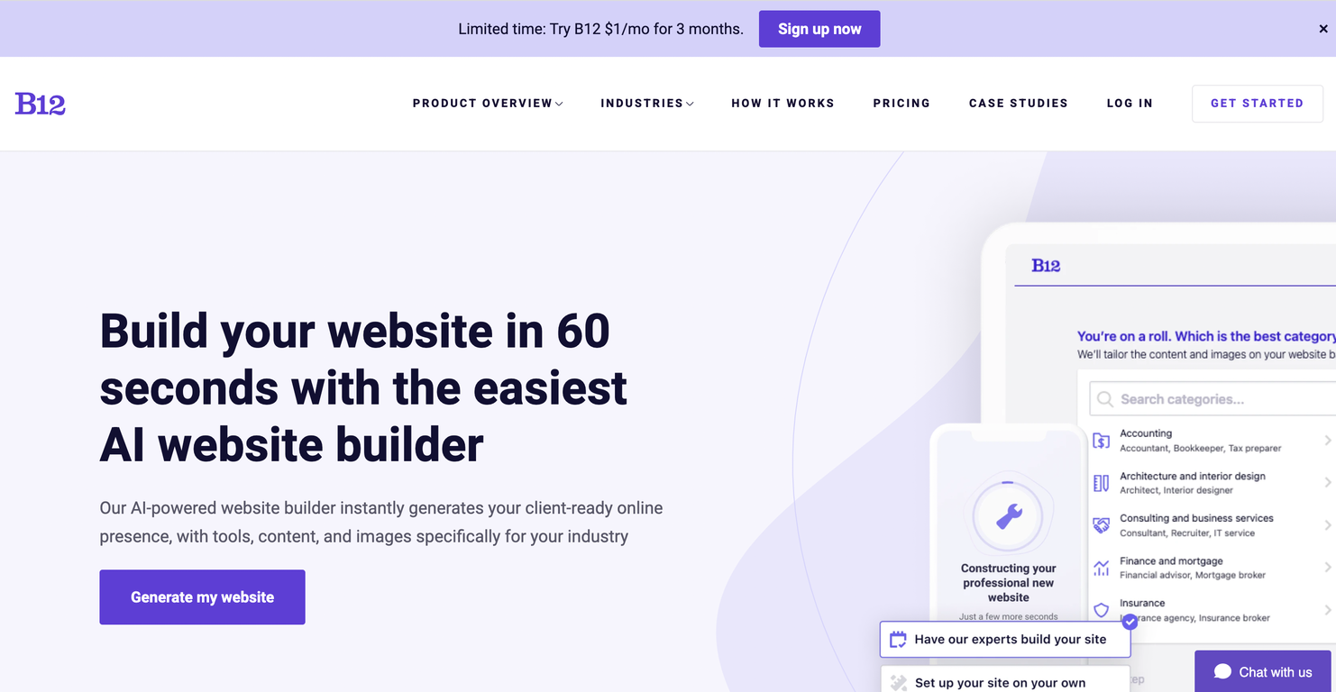 Generate a complete website, store, or web app from a simple prompt. B12 builds a fully customized project around your idea, including design, content, and functionality, so you can launch quickly and make changes just by describing what you want.