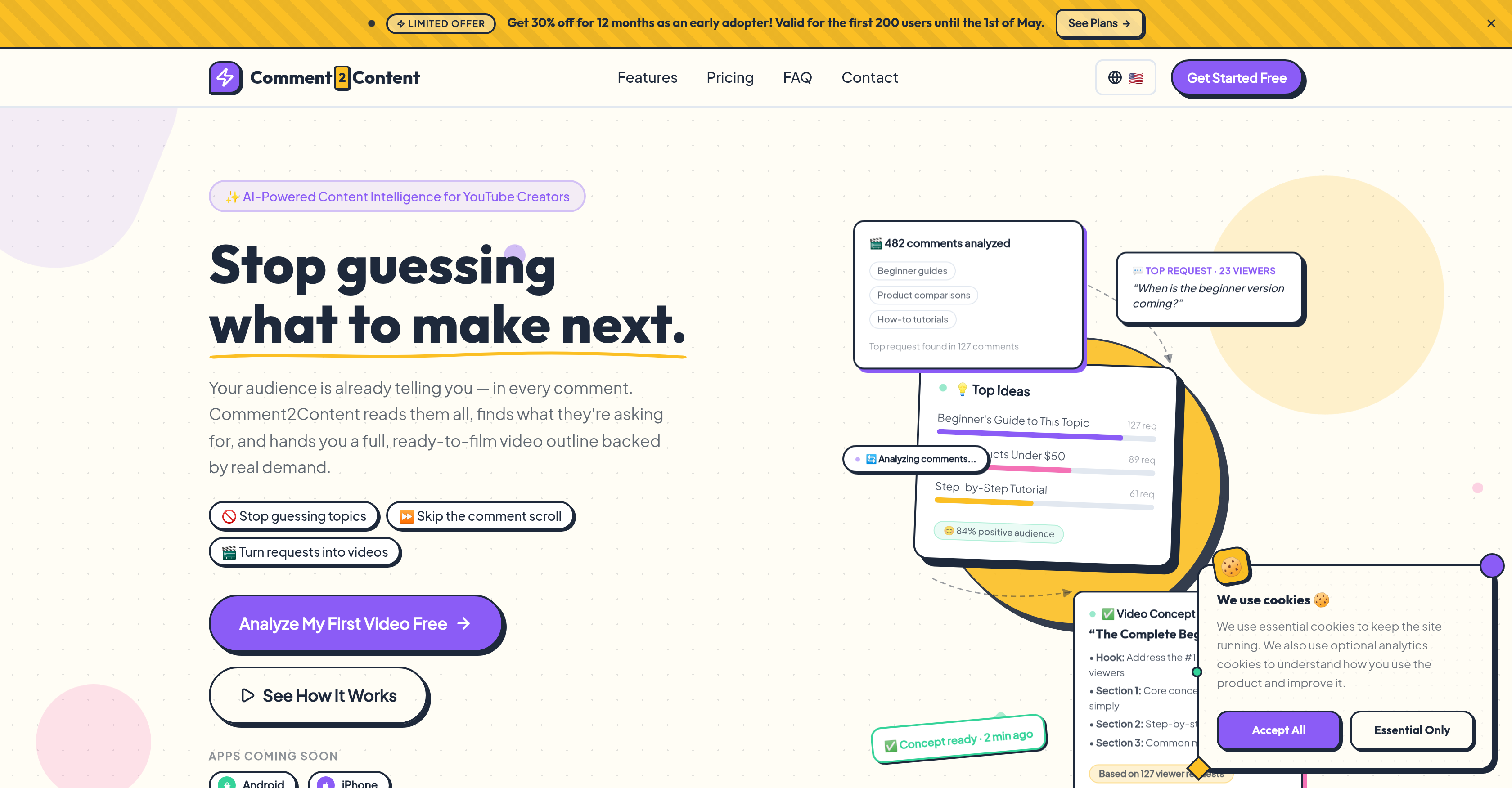 Comment2Content is an AI-powered tool designed for YouTube creators.