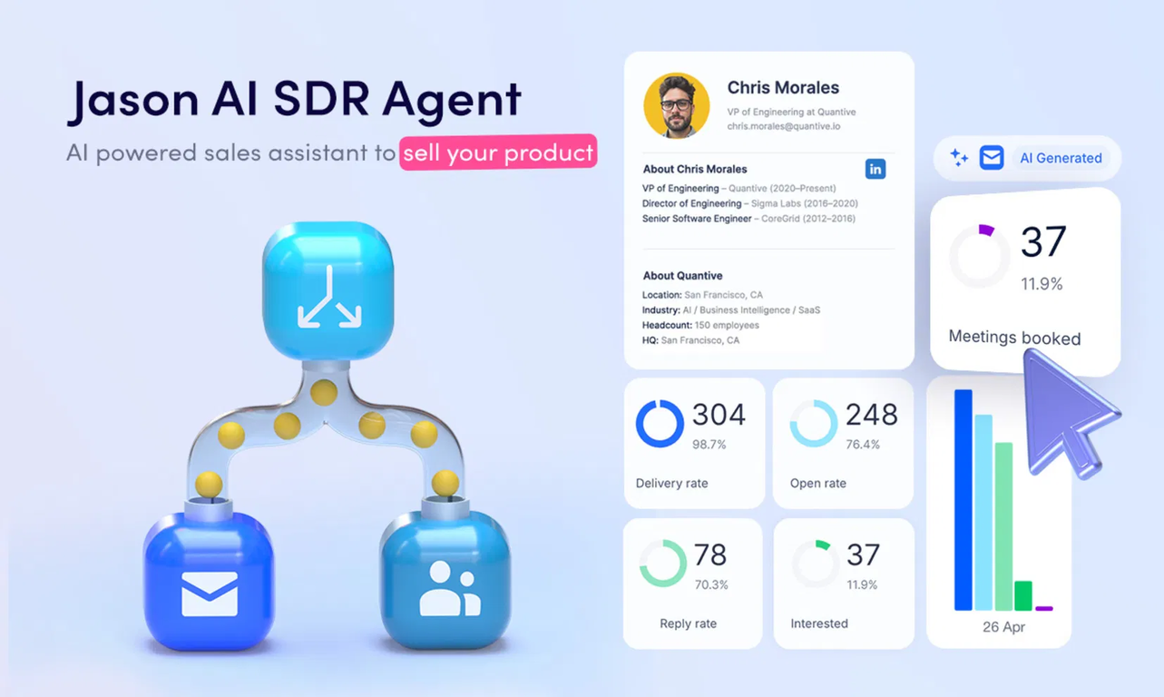 Overall, Jason AI streamlines the engagement cycle by handling the full outreach process, thereby freeing up time for sales teams to focus on more complex tasks.