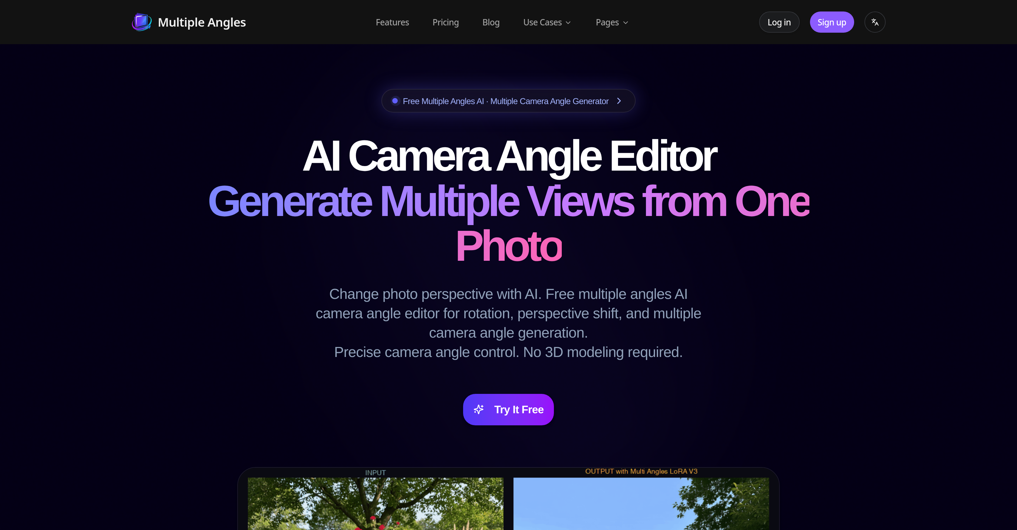 Multiple Angles is an AI-powered tool designed to transform a single image into multiple perspectives by manipulating the camera angles.