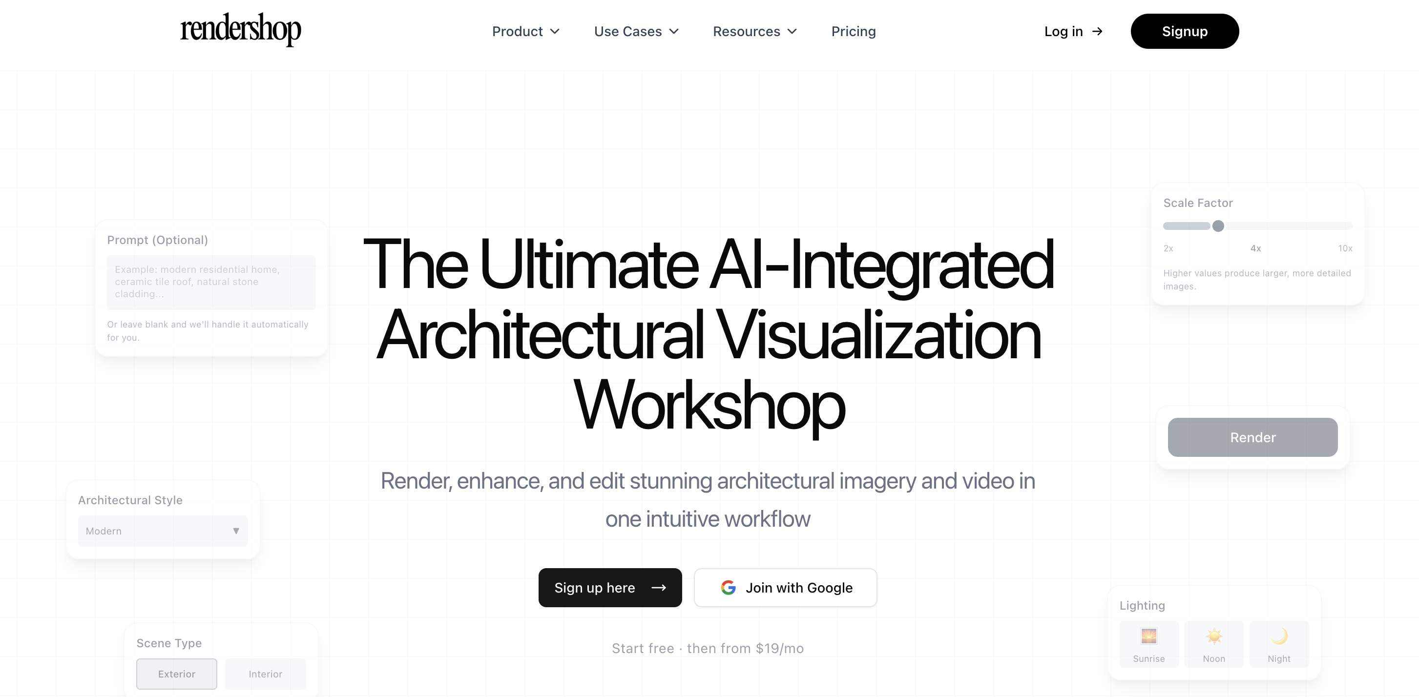 Rendershop is an AI-powered tool designed for architects, developers and designers. This tool is optimized for transforming CAD designs, sketches and elevations into highly realistic renders swiftly.