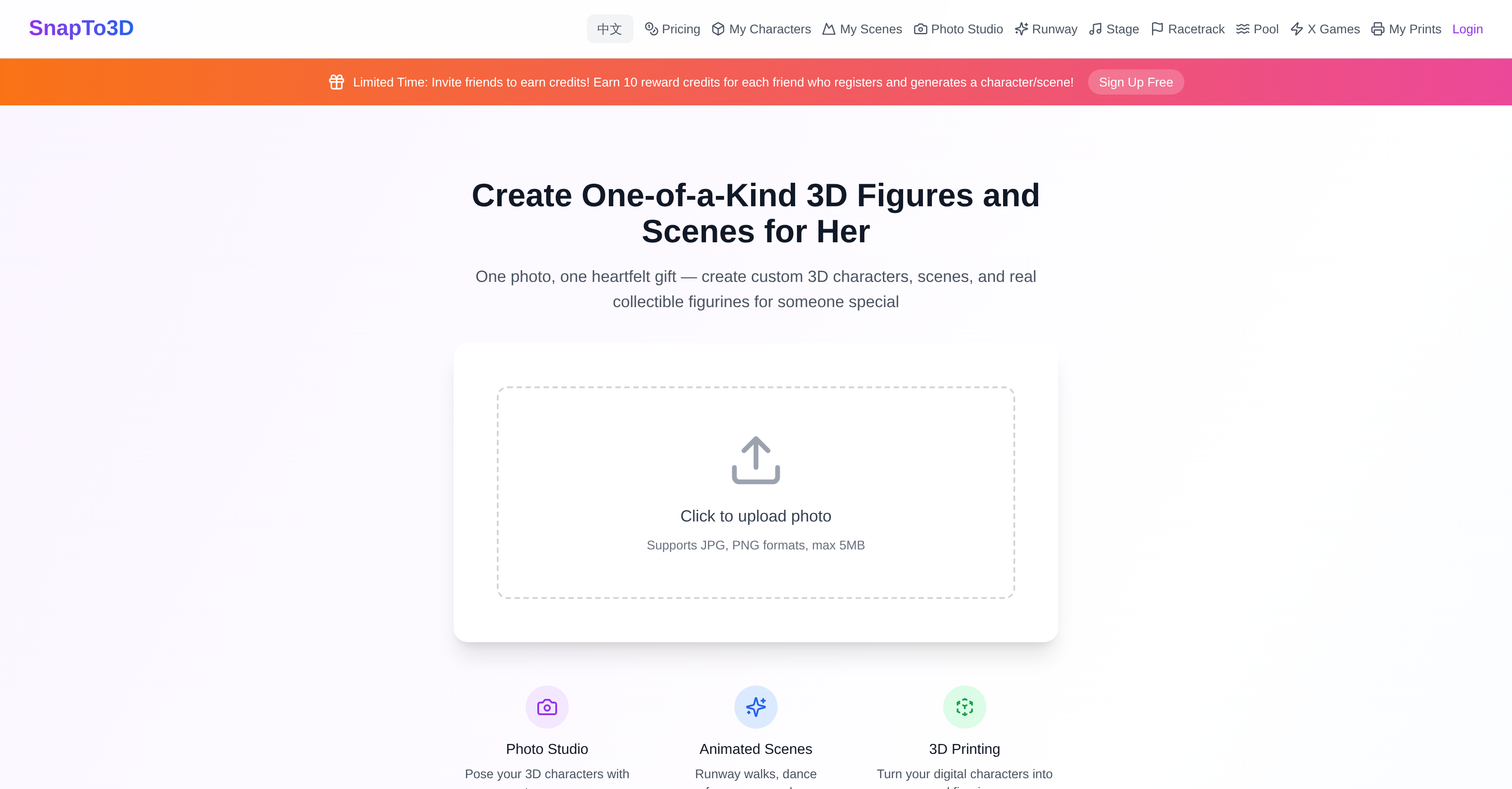 SnapTo3D is an innovative AI-based platform used for creating personalized 3D characters, scenes, and collectible figurines from photographs.