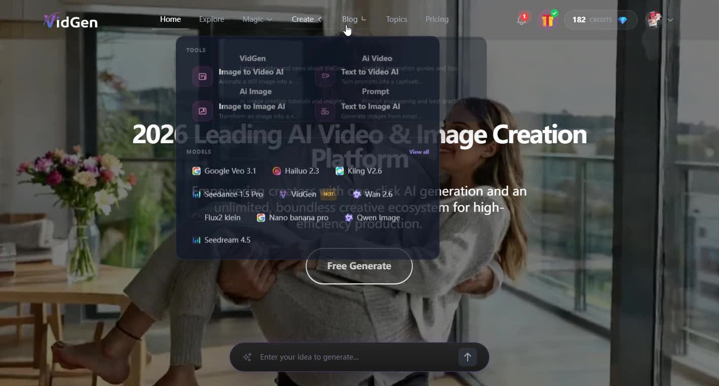 VidGen is a comprehensive AI-powered content creation and video generation platform. The service offers diverse applications such as converting image-to-video (img2vid), text-to-video (txt2vid), text-to-image (txt2img), and image-to-image (img2img). It further enhances the content with video effects (Vid FX) and image effects (Img FX) and allows model selection to cater to different creative tasks. VidGen leverages advanced vision AI to empower limitless creativity, offering a suitable solution for creators worldwide who want to engage their audience with AI-generated video content. The platform ensures all AI-generated content is consensually produced, emphasising ethical AI use. Users can explore various gallery categories and discover an assortment of magic effects to apply to their content. The platform also holds a 'create history' feature that gives users access to their creation history. Beyond content creation, VidGen provides resources to help its users navigate and understand its offerings, including a dedicated help centre, blogs on related topics, support services, and clear details on all legal terms and policies. VidGen is designed with a focus on user-friendly navigation, making it easier for creators to get started and continue creating with the platform.